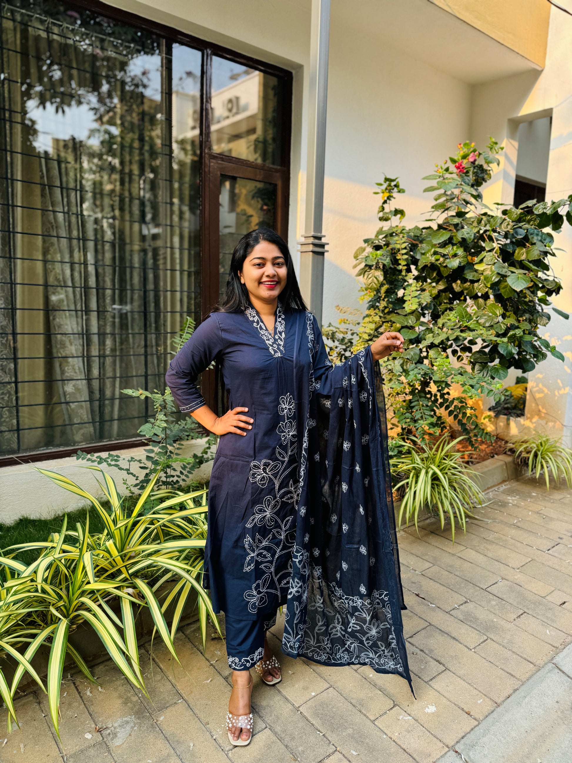 Blue Soft cotton 3 Piece Salwar Suit with intricate thread work- A1311