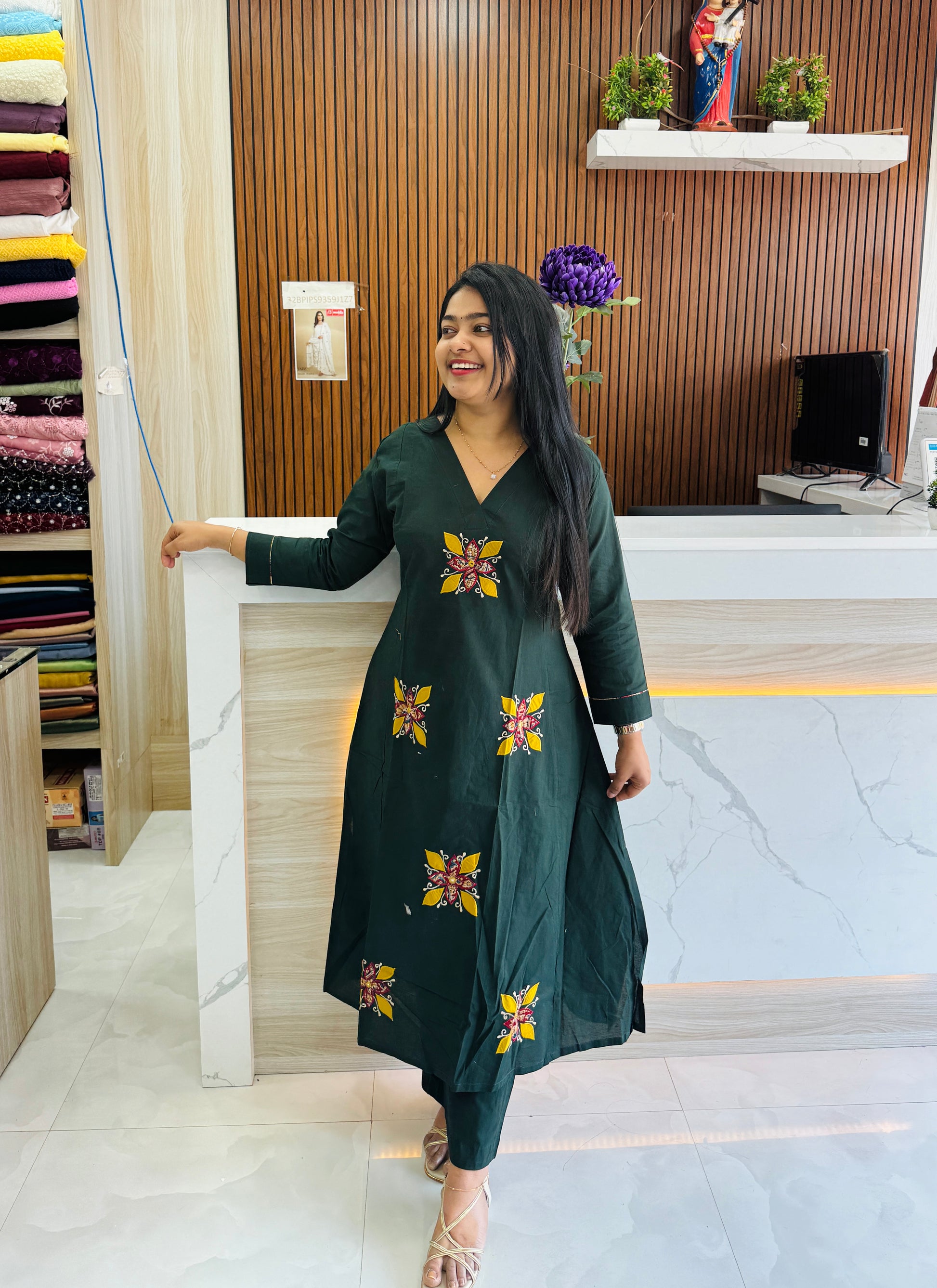 Features subtle Ajrak print highlights for a touch of traditional elegance.