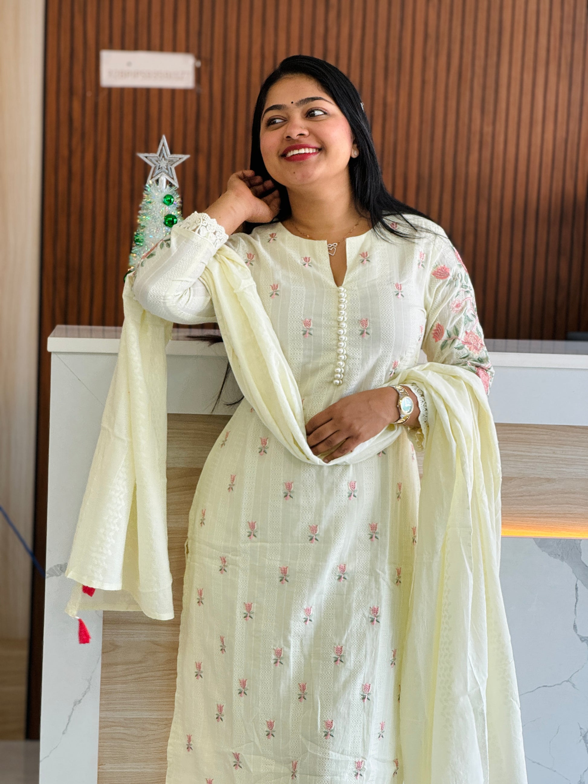 Our Mul Mul cotton three-piece set is the perfect blend of comfort and class â ideal for function wear!