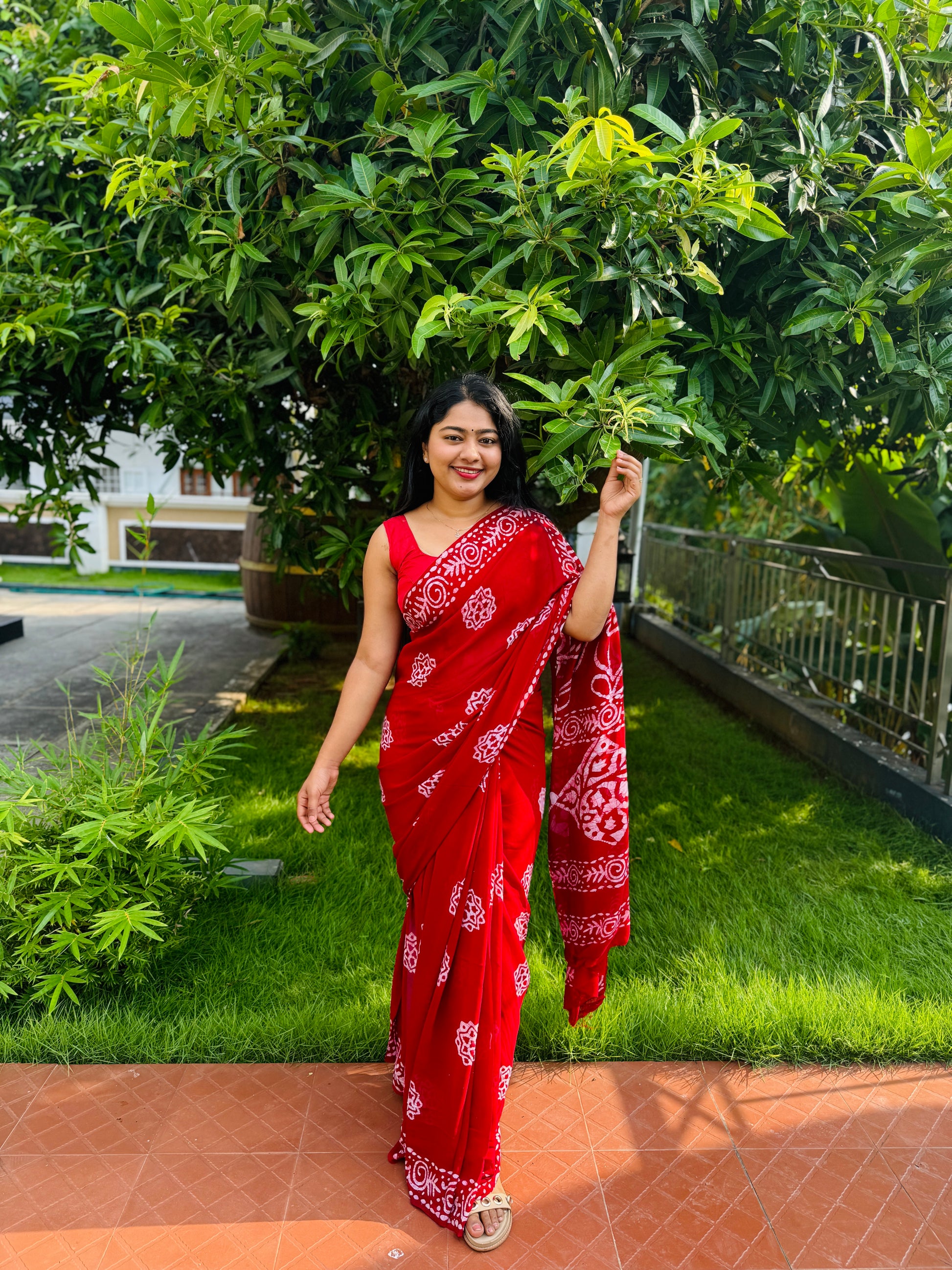 Our trending Viscose Georgette Saree is back in Maroon, Black, Blue, and Red shades!
