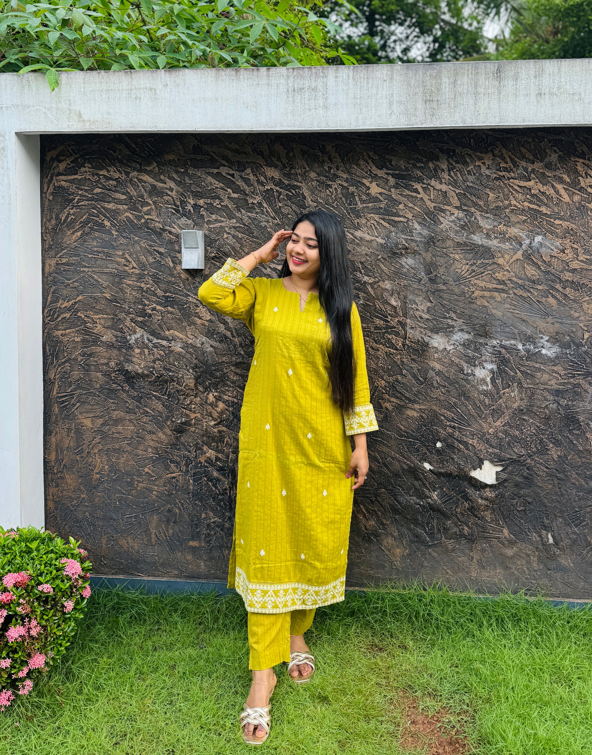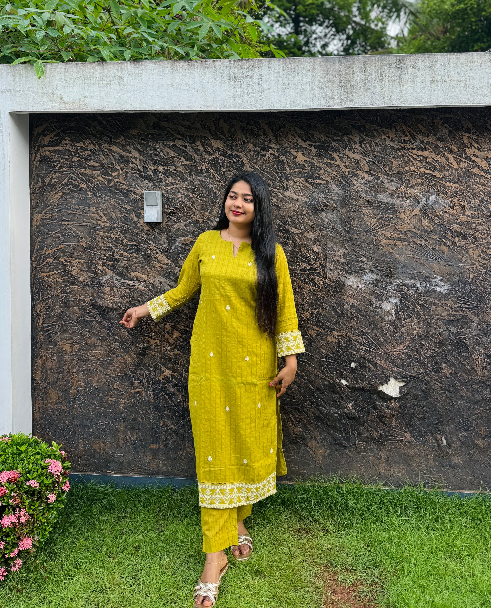 Our brick Orange, pink , Brown cord set is perfect for both daily and functional wear. Made with soft, lightweight fabric and attached lining for extra comfort. The top features stunning golden embroidery highlights with vertical lines that add a touch of grace.