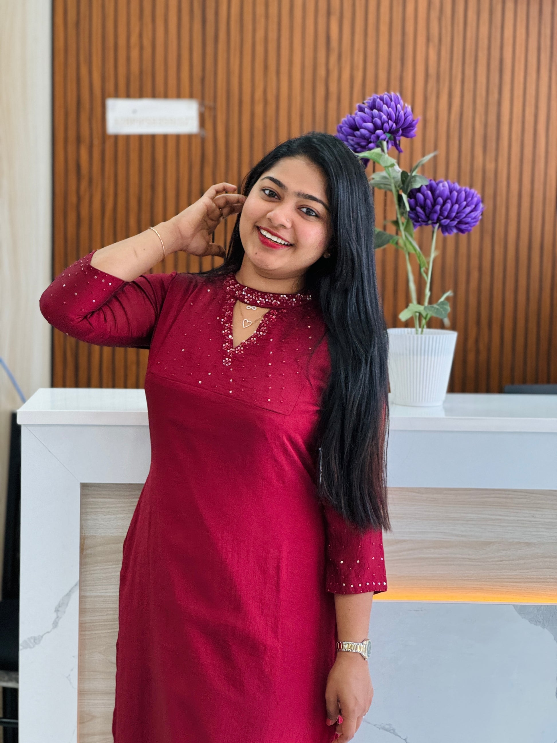 Elegant maroon shade crepe silk top