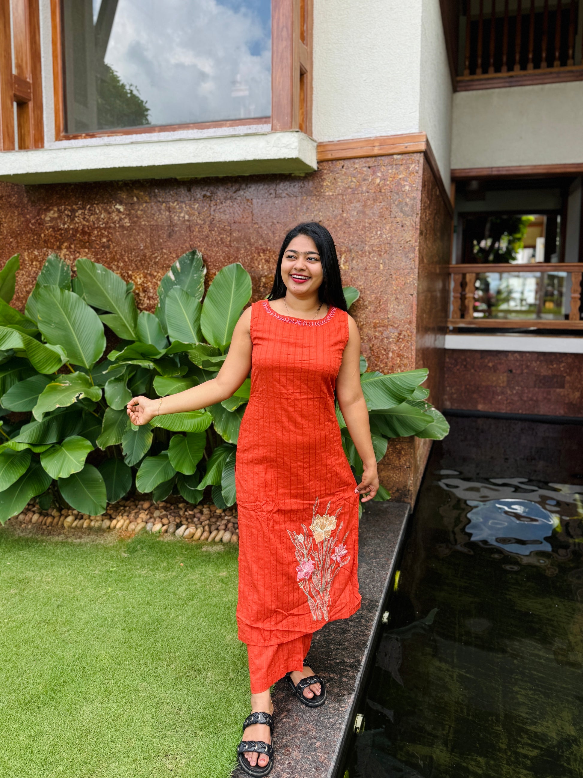 Elevate your everyday wardrobe with this elegant brick red cord set, thoughtfully designed for both comfort and style