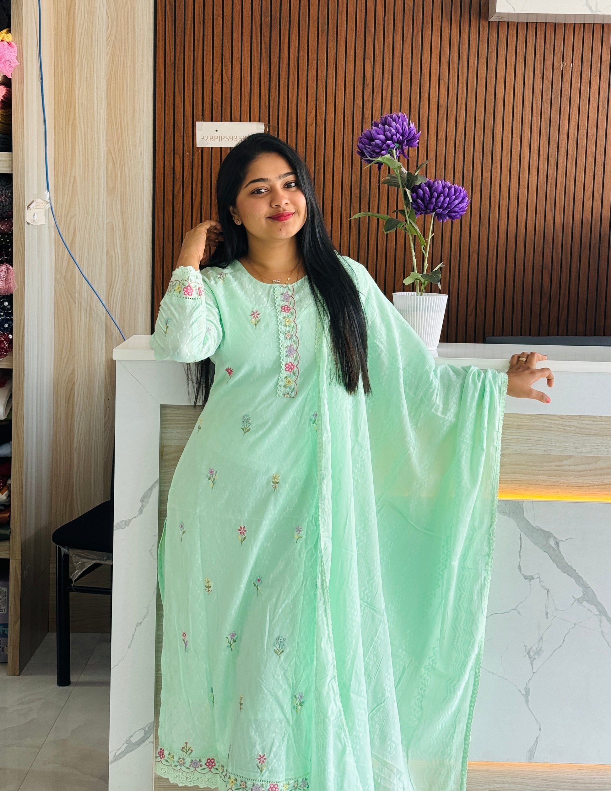 Premium Mul Mul Cotton 3 Piece ( Mint Green & Yellow ) A1662
